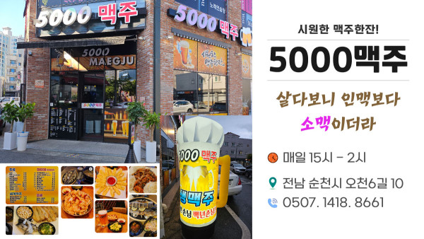 우리동네 목록 순천시 시원한 5천 맥주 2025-07-27 본문 5000 맥주 전남 순천시 오천 6길 10 0507 1418 8661 “회사는 통신판매중개자로서 입점 판매자가 등록한 상품, 거래 정보 및 이용자 간 거래에 대해 어떠한 책임도 부담하지 않습니다.” 관련자료 목록
